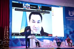 Во время форума через видеоконференцсвязь к молодежи обратился Председатель Комитета по делам молодежи и семьи Министерства информации и общественного развития РК Шахмардан Байманов. Он обозначил роль Елбасы в становлении Независимости Республики Казахстан и пожелал удачи в работе форума.