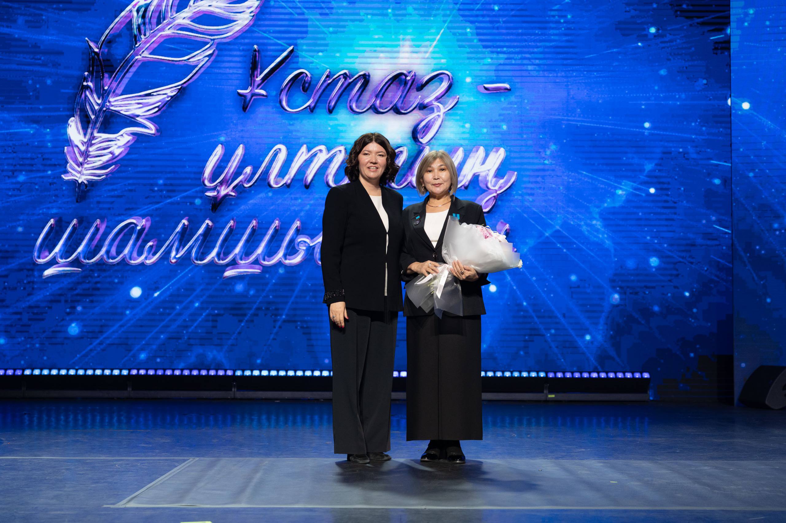 Преподаватель музыкального училища имени М.Тулебаева Гульжанат Каримова также удостоена медали «Ерен еңбегі үшін» Указом Президента. Высокую награду ей вручила министр просвещения Жулдыз Сулейменова.