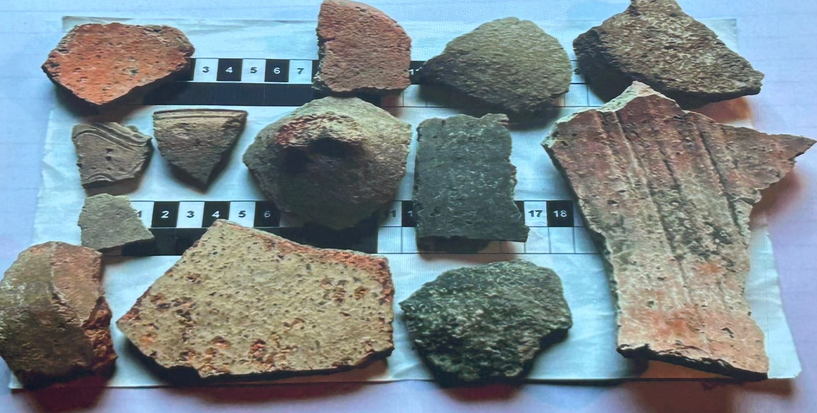 Особый интерес представляют найденные на поверхности артефакты. Среди них – орнаментированная керамика, сосуды с венчиком и ручками, а также изделия, выполненные в разной технике и в разное время. Часть керамики изготовлена грубым обжигом и может насчитывать не менее тысячи лет. Вместе с тем встречаются и более качественные изделия, включая образцы фарфора, что говорит о длительном существовании маршрута.
