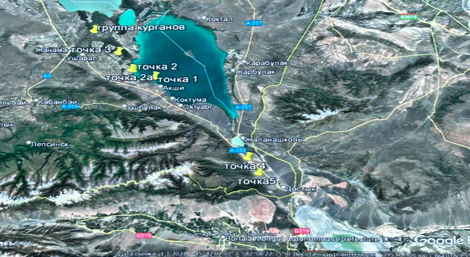 По словам исследователя, перед поездками он традиционно изучает спутниковые изображения местности, где планирует находиться. Так произошло и в этом году, когда он вместе с дочерью отправился отдыхать на Алаколь. Просматривая Алматинскую сторону озера, рядом с туристическими базами он заметил на карте подозрительную точку с чёткими геометрическими очертаниями.