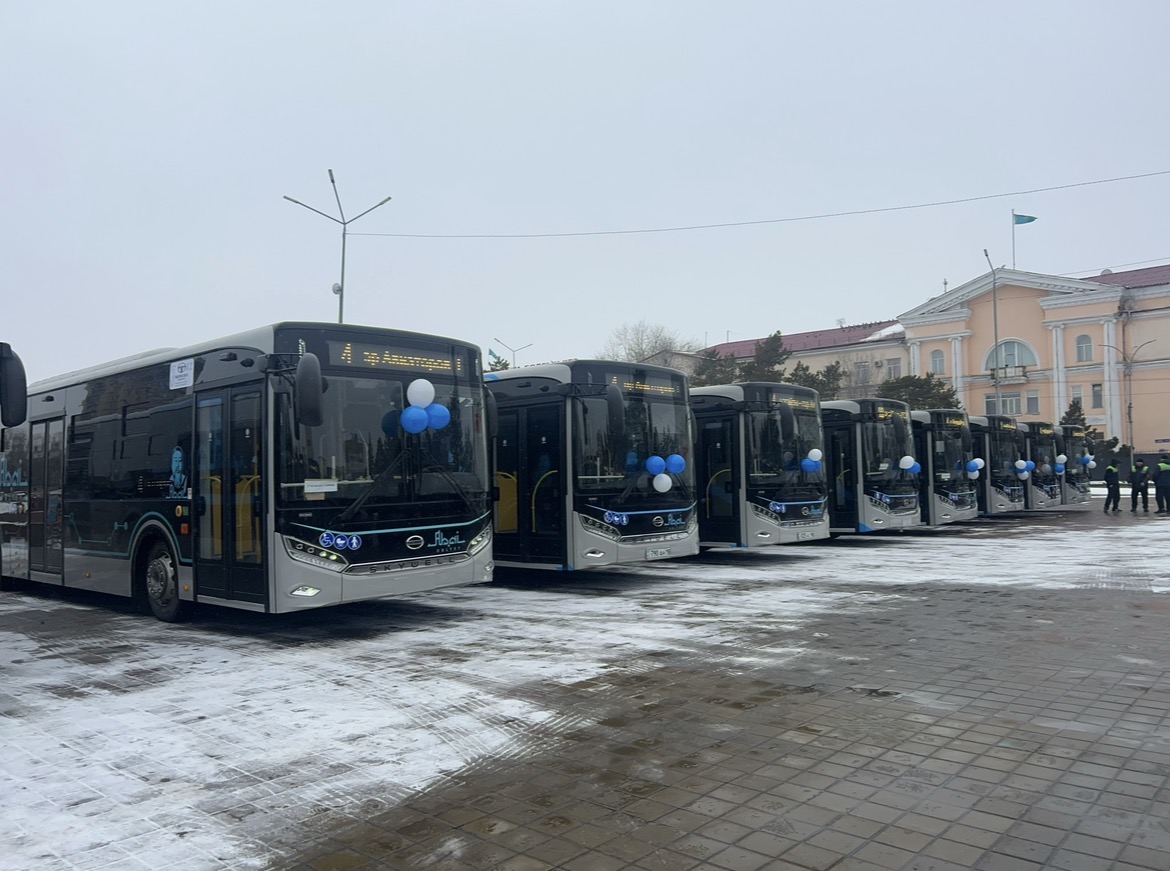 Семей.14.03.”Semey Ainasy” – В Семее запускают 32 новых автобуса, часть из которых была презентована сегодня на Центральной площади города. Новые низкопольные автобусы, собранные на местном автосборочном предприятии Daewoo Bus, будут обслуживать маршруты 2, 4, 12, 20, 33, 35 и 39.