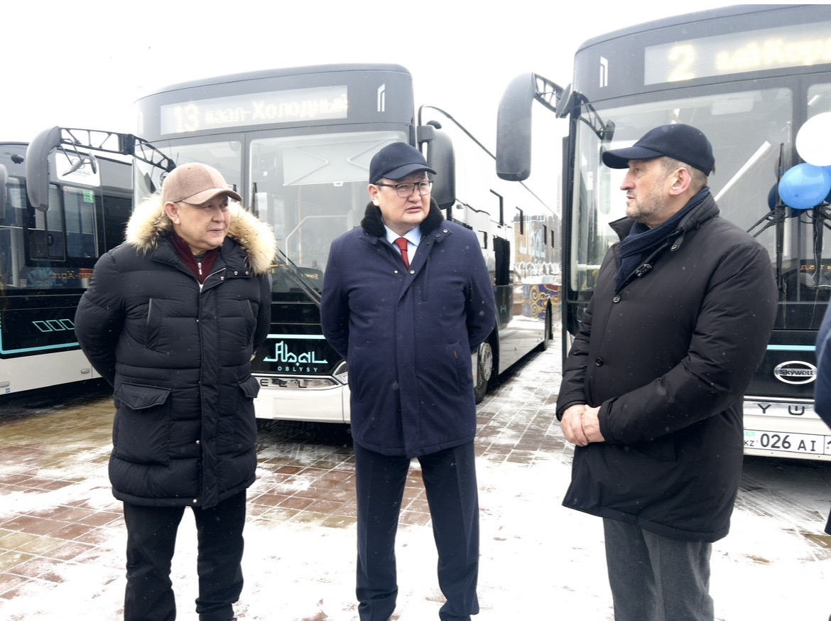 На презентации присутствовал и аким области Абай Берек Уали. Он осмотрел новые автобусы и пообщался с представителями автопарка, интересуясь их работой с субсидиями и организацией работы транспорта.